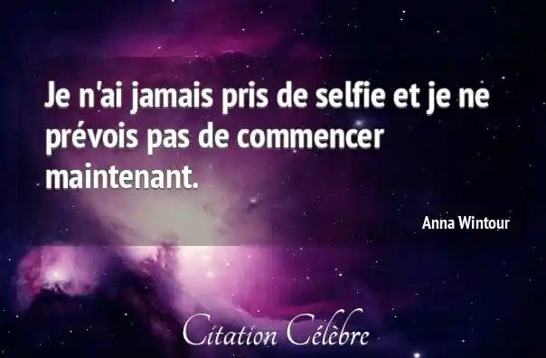 Je n'ai jamais pris de selfie et je ne prévois pas de commencer maintenant.