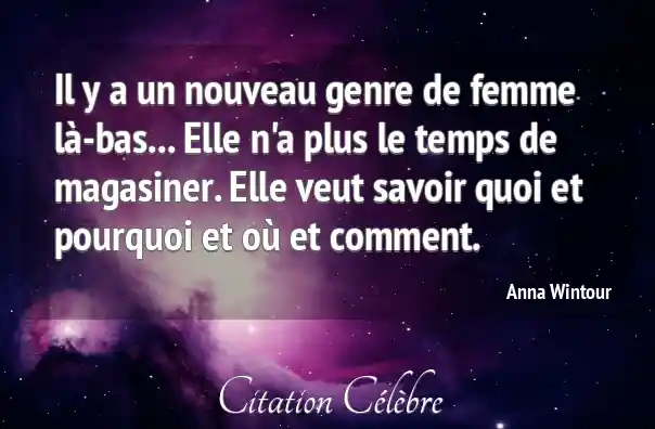 Il y a un nouveau genre de femme là-bas... Elle n'a plus le temps de magasiner. Elle veut savoir quoi et pourquoi et où et comment.