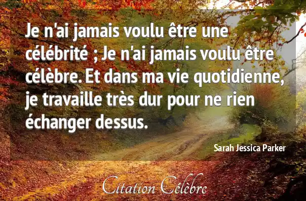 Je n'ai jamais voulu être une célébrité ; Je n'ai jamais voulu être célèbre. Et dans ma vie quotidienne, je travaille très dur pour ne rien échanger dessus.