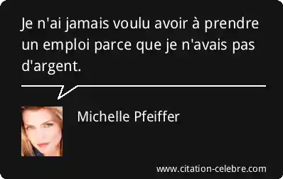 Citation Michelle Pfeiffer argent : Je n'ai jamais voulu avoir à prendre un emploi parce...