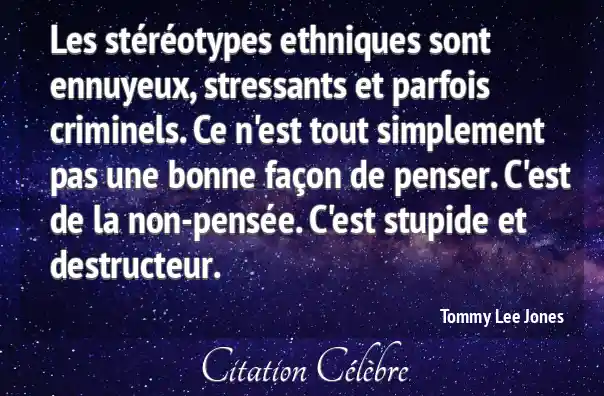 Les stéréotypes ethniques sont ennuyeux, stressants et parfois criminels. Ce n'est tout simplement pas une bonne façon de penser. C'est de la non-pensée. C'est stupide et destructeur.