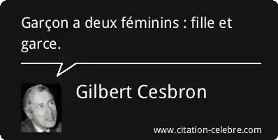 Citation Gilbert Cesbron fille : Garçon a deux féminins : fille et garce....
