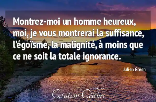 Montrez-moi un homme heureux, moi, je vous montrerai la suffisance, l'égoïsme, la malignité, à moins que ce ne soit la totale ignorance.