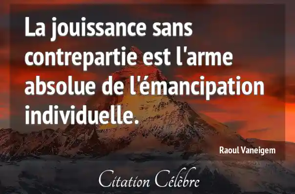 La jouissance sans contrepartie est l'arme absolue de l'émancipation individuelle.