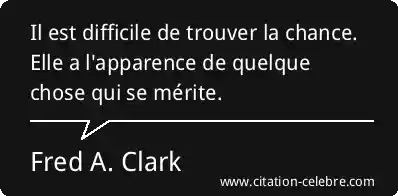 Il est difficile de trouver la chance. Elle a l'apparence de quelque chose qui se mérite.