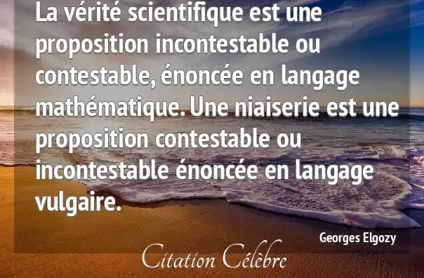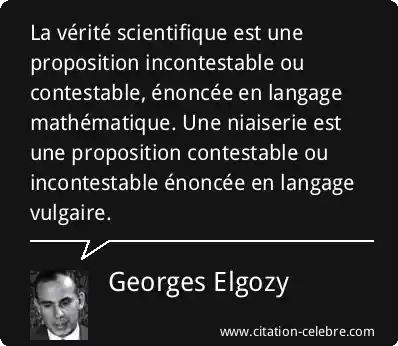La vérité scientifique est une proposition incontestable ou contestable, énoncée en langage mathématique. Une niaiserie est une proposition contestable ou incontestable énoncée en langage vulgaire.