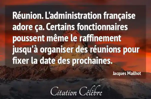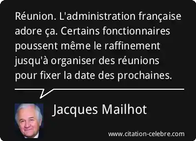Réunion. L'administration française adore ça. Certains fonctionnaires poussent même le raffinement jusqu'à organiser des réunions pour fixer la date des prochaines.