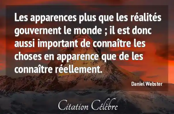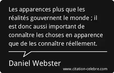 Les apparences plus que les réalités gouvernent le monde ; il est donc aussi important de connaître les choses en apparence que de les connaître réellement.