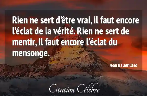 Rien ne sert d'être vrai, il faut encore l'éclat de la vérité. Rien ne sert de mentir, il faut encore l'éclat du mensonge.