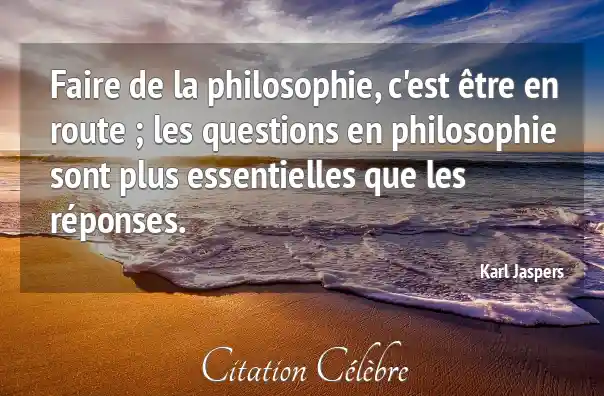 Faire de la philosophie, c'est être en route ; les questions en philosophie sont plus essentielles que les réponses.