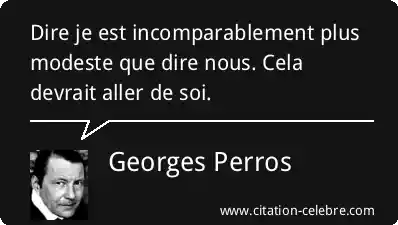 Citation Georges Perros dire : Dire je est incomparablement plus modeste que dire nous. Cela...