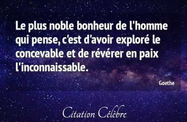 Le plus noble bonheur de l'homme qui pense, c'est d'avoir exploré le concevable et de révérer en paix l'inconnaissable.
