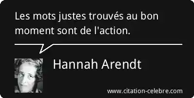 Citation Hannah Arendt bon : Les mots justes trouvés au bon moment sont de l'action....