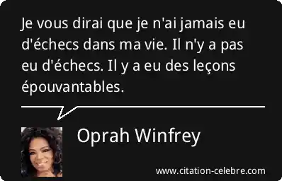Je vous dirai que je n'ai jamais eu d'échecs dans ma vie. Il n'y a pas eu d'échecs. Il y a eu des leçons épouvantables.