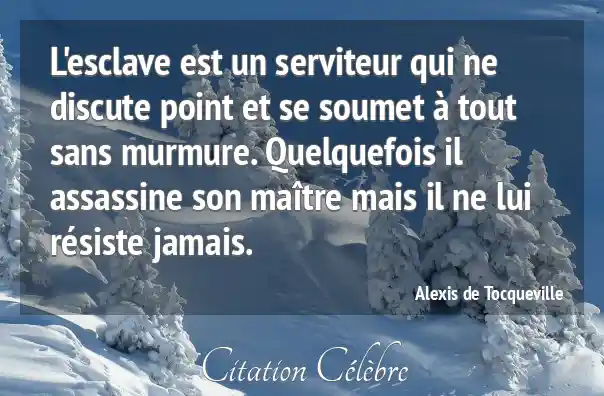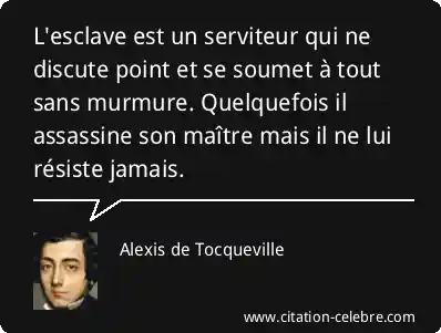 L'esclave est un serviteur qui ne discute point et se soumet à tout sans murmure. Quelquefois il assassine son maître mais il ne lui résiste jamais.