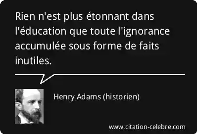 Citation Henry Adams (historien) education : Rien n'est plus étonnant dans l'éducation que toute l'ignorance accumulée...