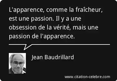 L'apparence, comme la fraîcheur, est une passion. Il y a une obsession de la vérité, mais une passion de l'apparence.