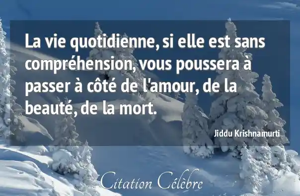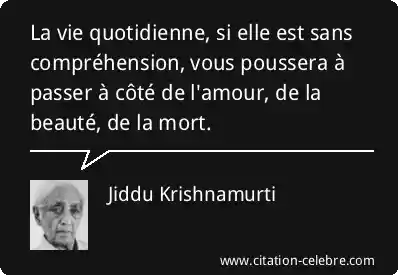 La vie quotidienne, si elle est sans compréhension, vous poussera à passer à côté de l'amour, de la beauté, de la mort.