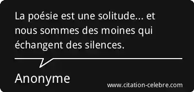 La poésie est une solitude... et nous sommes des moines qui échangent des silences.