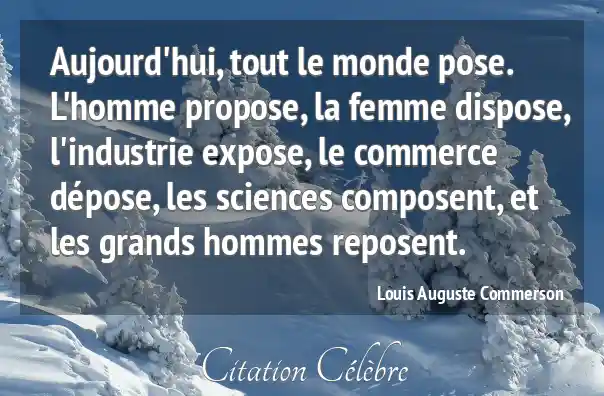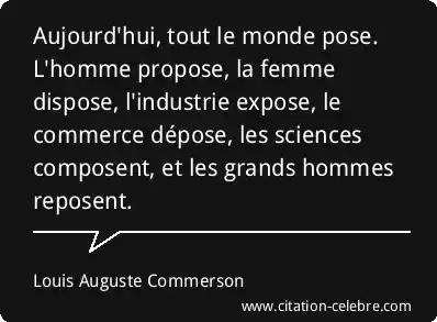 Aujourd'hui, tout le monde pose. L'homme propose, la femme dispose, l'industrie expose, le commerce dépose, les sciences composent, et les grands hommes reposent.