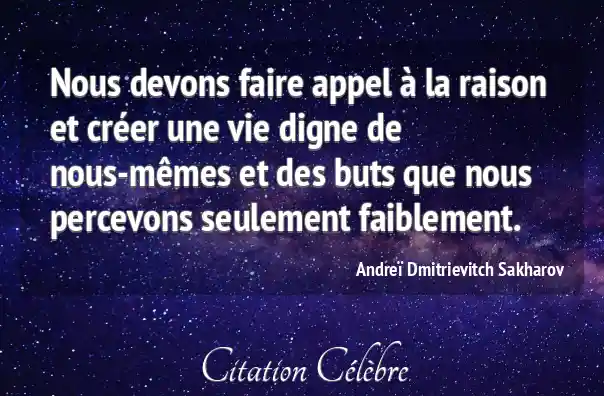 Nous devons faire appel à la raison et créer une vie digne de nous-mêmes et des buts que nous percevons seulement faiblement.