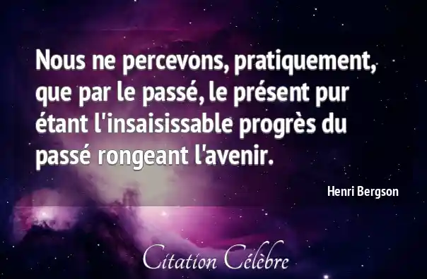 Nous ne percevons, pratiquement, que par le passé, le présent pur étant l'insaisissable progrès du passé rongeant l'avenir.