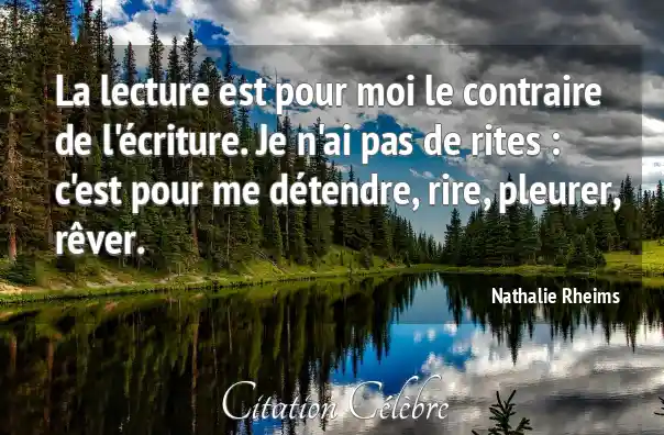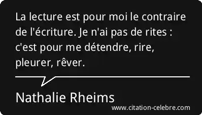 La lecture est pour moi le contraire de l'écriture. Je n'ai pas de rites : c'est pour me détendre, rire, pleurer, rêver.