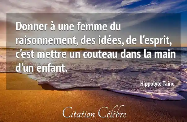 Donner à une femme du raisonnement, des idées, de l'esprit, c'est mettre un couteau dans la main d'un enfant.