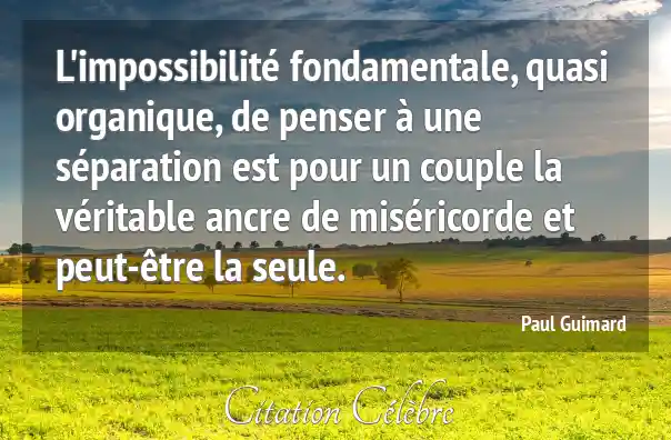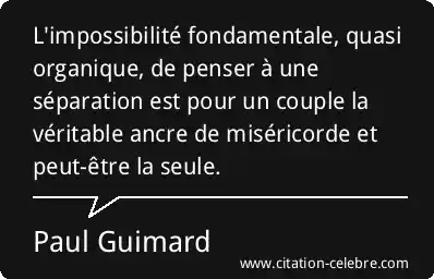 L'impossibilité fondamentale, quasi organique, de penser à une séparation est pour un couple la véritable ancre de miséricorde et peut-être la seule.