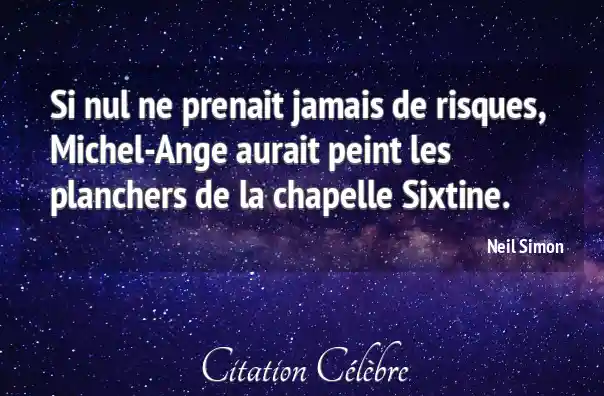 Si nul ne prenait jamais de risques, Michel-Ange aurait peint les planchers de la chapelle Sixtine.