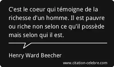 C'est le coeur qui témoigne de la richesse d'un homme. Il est pauvre ou riche non selon ce qu'il possède mais selon qui il est.