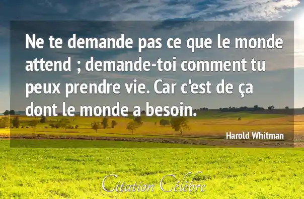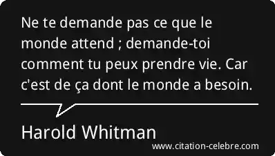Ne te demande pas ce que le monde attend ; demande-toi comment tu peux prendre vie. Car c'est de ça dont le monde a besoin.