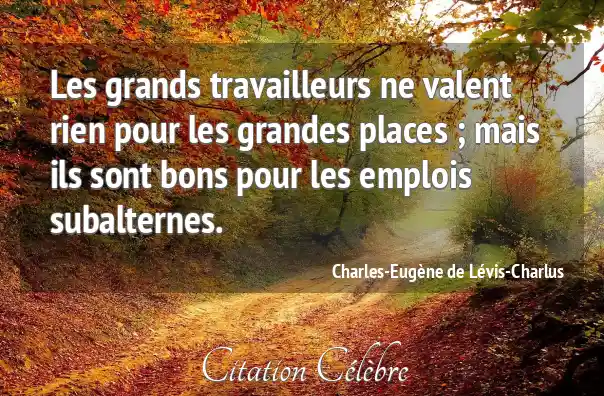Les grands travailleurs ne valent rien pour les grandes places ; mais ils sont bons pour les emplois subalternes.