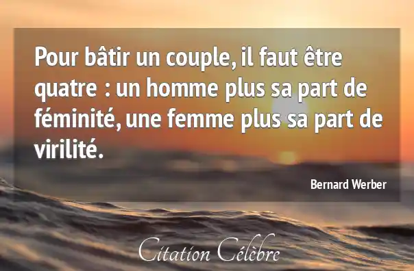 Citation Bernard Werber femme : Pour bâtir un couple, il faut être quatre : un...