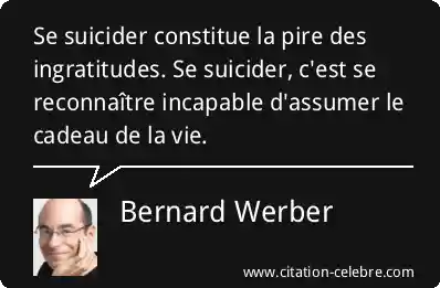 Se suicider constitue la pire des ingratitudes. Se suicider, c'est se reconnaître incapable d'assumer le cadeau de la vie.