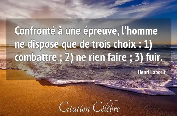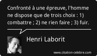 Confronté à une épreuve, l'homme ne dispose que de trois choix : 1) combattre ; 2) ne rien faire ; 3) fuir.