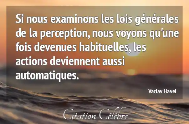Si nous examinons les lois générales de la perception, nous voyons qu'une fois devenues habituelles, les actions deviennent aussi automatiques.