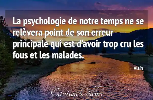 La psychologie de notre temps ne se relèvera point de son erreur principale qui est d'avoir trop cru les fous et les malades.