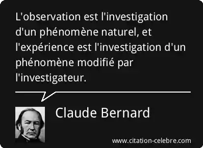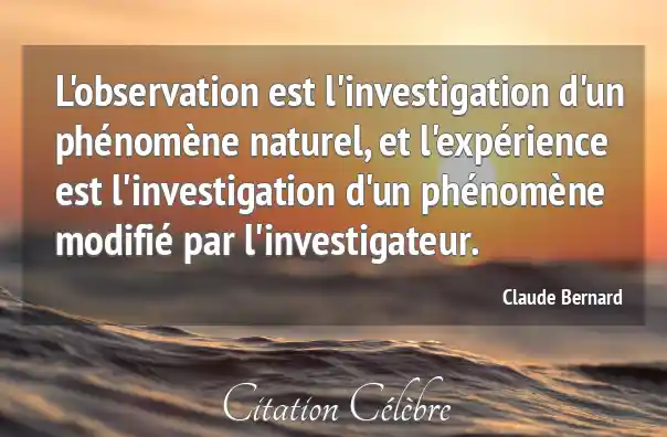 L'observation est l'investigation d'un phénomène naturel, et l'expérience est l'investigation d'un phénomène modifié par l'investigateur.