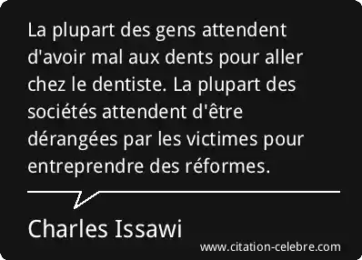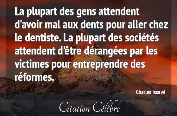 La plupart des gens attendent d'avoir mal aux dents pour aller chez le dentiste. La plupart des sociétés attendent d'être dérangées par les victimes pour entreprendre des réformes.