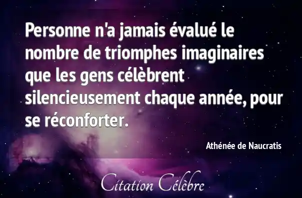 Personne n'a jamais évalué le nombre de triomphes imaginaires que les gens célèbrent silencieusement chaque année, pour se réconforter.
