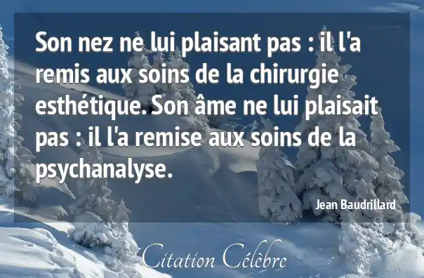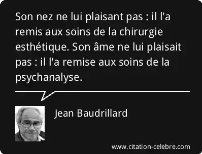Son nez ne lui plaisant pas : il l'a remis aux soins de la chirurgie esthétique. Son âme ne lui plaisait pas : il l'a remise aux soins de la psychanalyse.