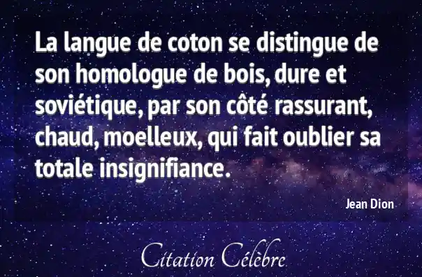 La langue de coton se distingue de son homologue de bois, dure et soviétique, par son côté rassurant, chaud, moelleux, qui fait oublier sa totale insignifiance.