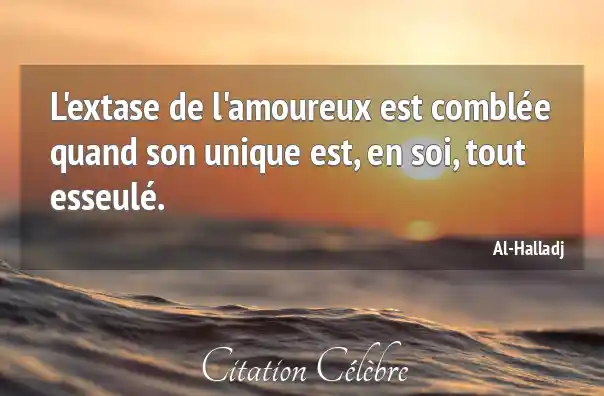 L'extase de l'amoureux est comblée quand son unique est, en soi, tout esseulé.