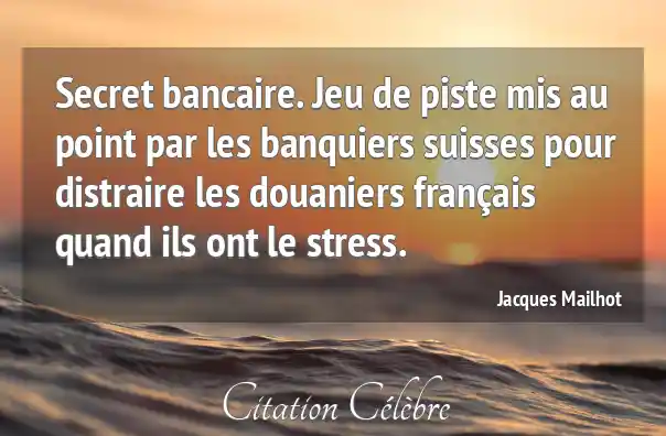 Secret bancaire. Jeu de piste mis au point par les banquiers suisses pour distraire les douaniers français quand ils ont le stress.