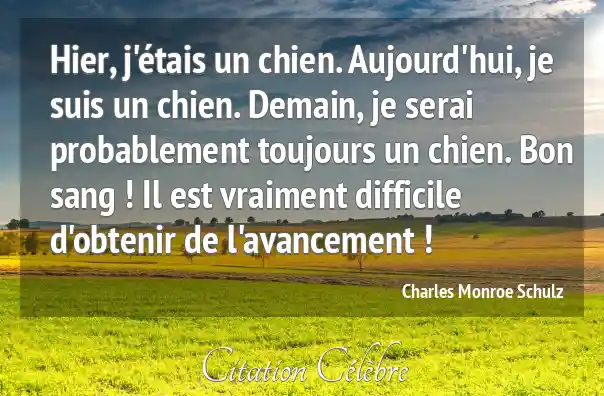 Hier, j'étais un chien. Aujourd'hui, je suis un chien. Demain, je serai probablement toujours un chien. Bon sang ! Il est vraiment difficile d'obtenir de l'avancement !