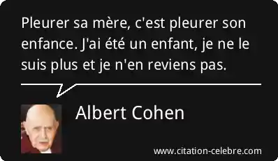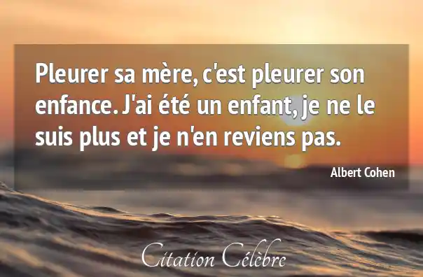Pleurer sa mère, c'est pleurer son enfance. J'ai été un enfant, je ne le suis plus et je n'en reviens pas.