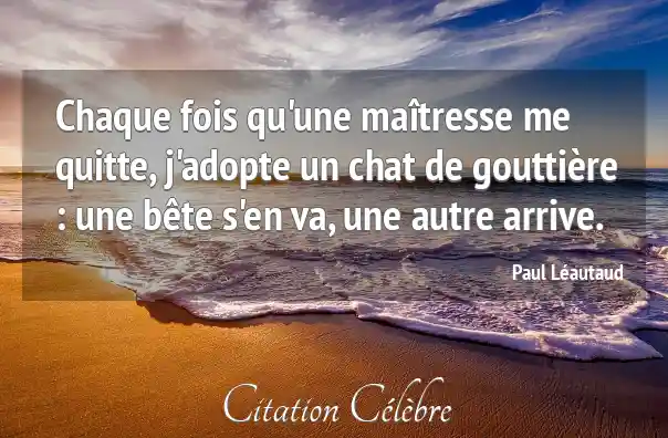 Chaque fois qu'une maîtresse me quitte, j'adopte un chat de gouttière : une bête s'en va, une autre arrive.