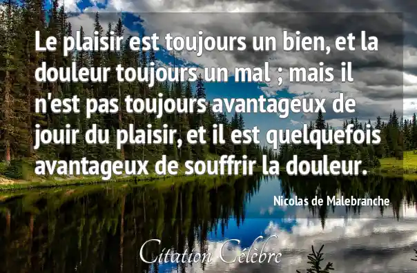 Le plaisir est toujours un bien, et la douleur toujours un mal ; mais il n'est pas toujours avantageux de jouir du plaisir, et il est quelquefois avantageux de souffrir la douleur.
