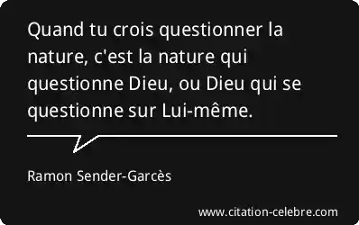 Quand tu crois questionner la nature, c'est la nature qui questionne Dieu, ou Dieu qui se questionne sur Lui-même.